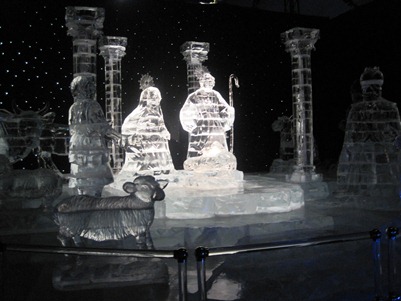 After the Madagascar exhibit, there was a special room with an ice sculpture of the Nativity scene showing the true meaning of Christmas. I think this was the same sculpture that I saw two years ago. I guess they keep it in cold storage.