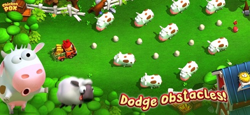 While collecting eggs, you’ll have to avoid obstacles like cows and sheep. Running into them will slow you down. Hidden in most levels are blue eggs. Tap them as you scoot about for an extra goal, but they are tricky to find especially since you have to move quickly. If you don’t make it to the finish line in time, you’ll lose a gas tank and must start over. Lose all five and you must wait a while to refill, as these kinds of free-to-play games tend to be. You can also spend real money to buy new riding lawn mowers and other vehicles, among other things.