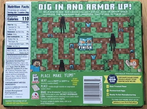 Pillsbury has some pre-cut ready to bake cookies featuring Minecraft. I found them at a grocery store near where my mom lives (Brookshire’s, a local Texas chain you see around smaller towns), and we bought them and baked them last time I was visiting her. So let’s take a look at them!