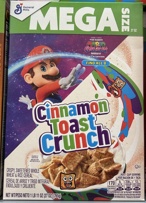 First up is Mario on Cinnamon Toast Crunch. Keep in mind that I didn’t buy any of these, I just took pictures of them at the store. That would be a lot of cereal to buy, and I don’t really eat that many sugary cereals anyway.