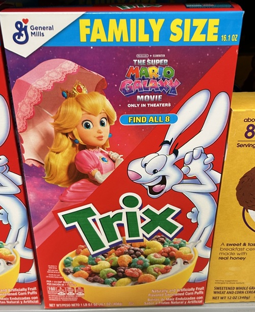 Princess Peach gets to be with Trix. Silly rabbit, Trix are for princesses! I used to know a former Disney animator who also worked on the early Trix Rabbit TV ads.