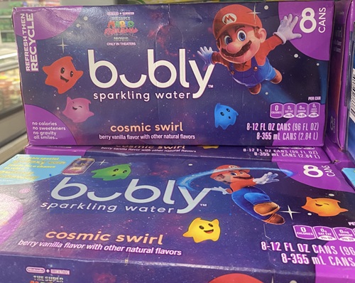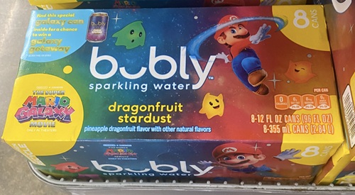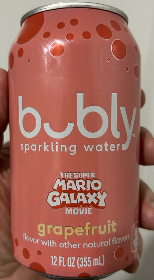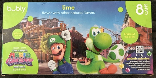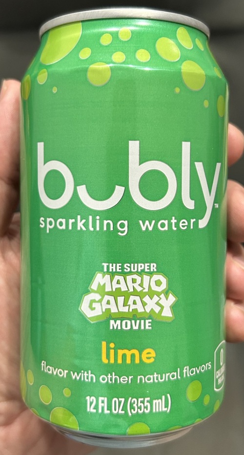 I saw some Mario Galaxy Movie themed Bubly Sparkling Water at the store, so I thought I’d show you all what I found.